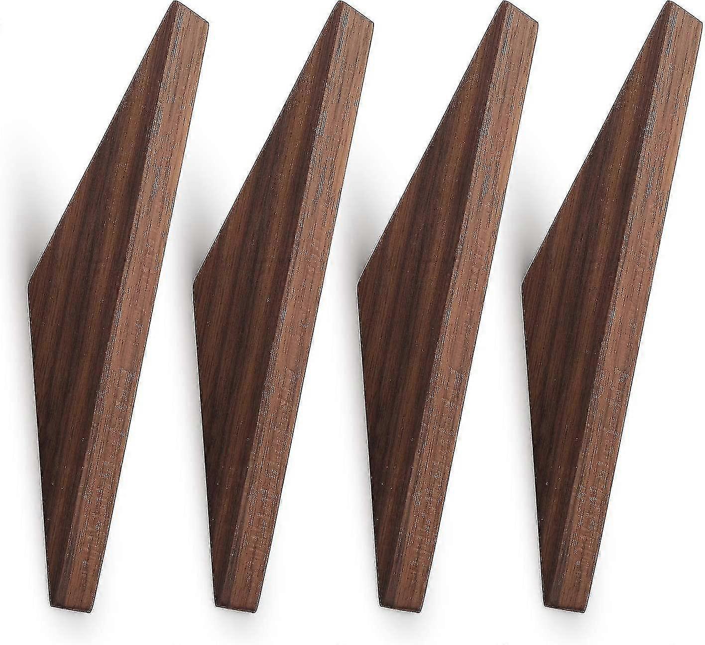 Set Of 4, Natural Wooden Black Walnut Wood Coat Hooks, Wall Mounted Single Wall Wooden Hook Rack