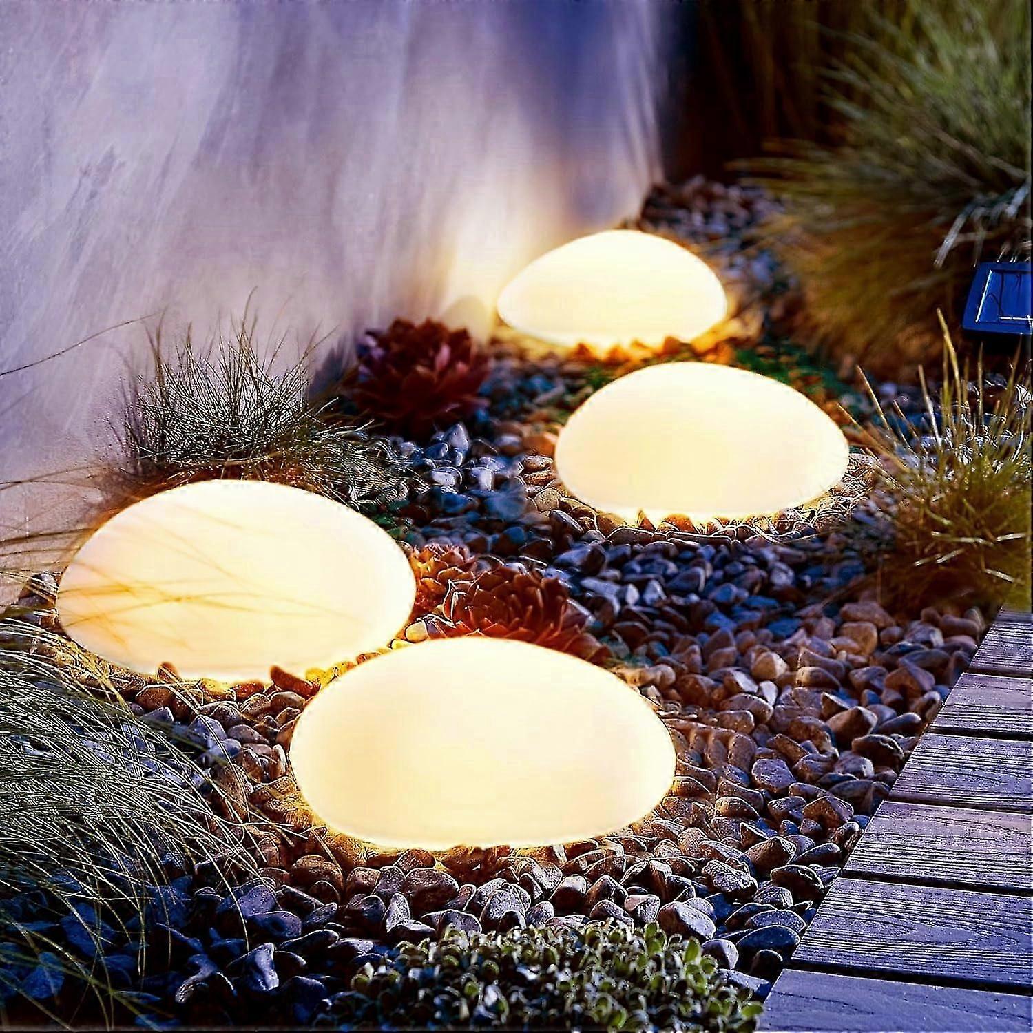 Set of 4 Solar Lights Outdoor Waterproof Solar Pebble Rock Garden Lights Decorative with Cool White LED,Warm White