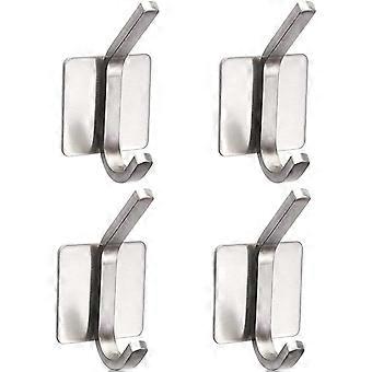 Set Of 4 Self-Adhesive Stainless Steel Bathroom Hooks, Wall Door, Clothes, Pants