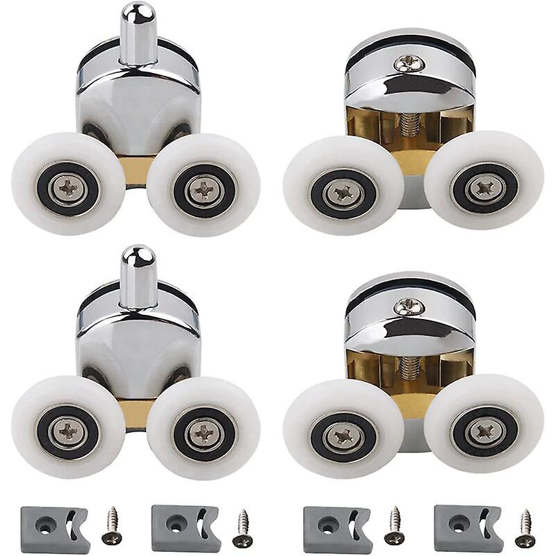 Set of 4 Double Casters - for Sliding Shower Door, 2 Wheels 23mm Diameter Zinc Alloy Bathroom