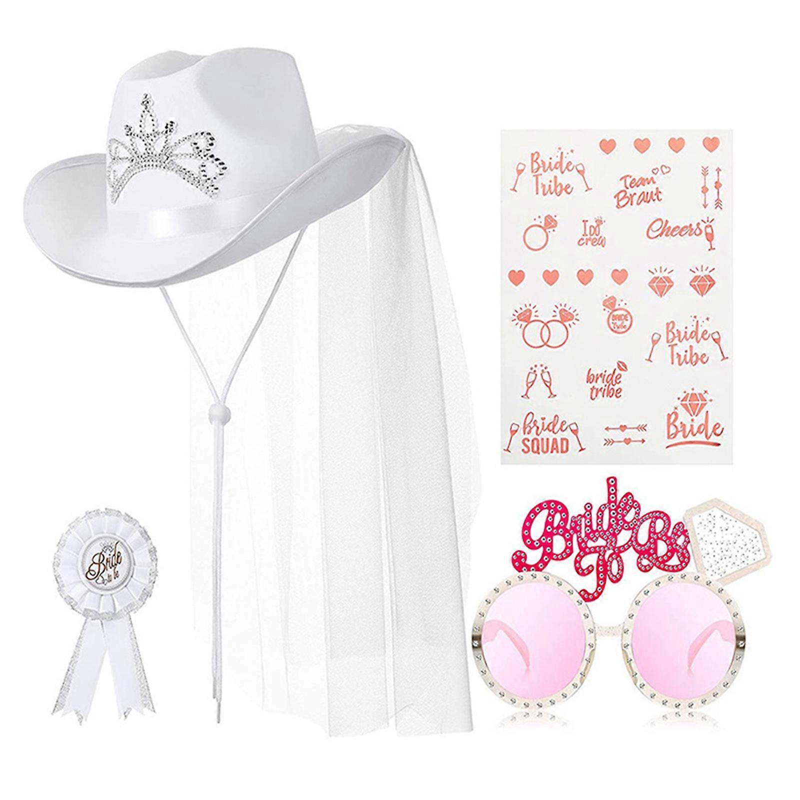 Set of 4 Bridal Hat+Veil Bachelorette Party Bridal Shower Wedding Cute Glasses Veil Cowboy Hat Badge Supplies bridal suit
