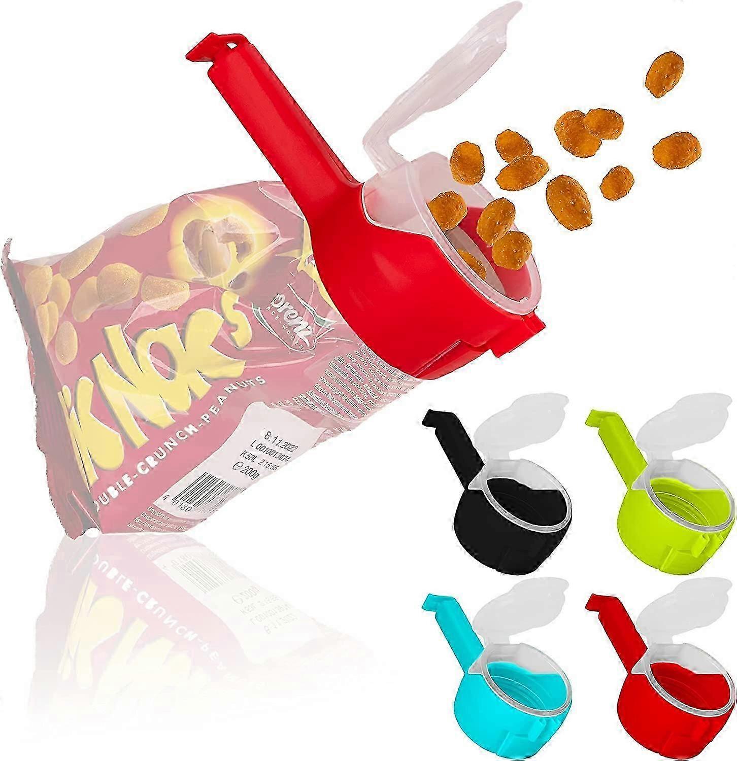 Set of 4 closure clips with spout, kitchen clip, bag clips, snack dispenser, freshness clips