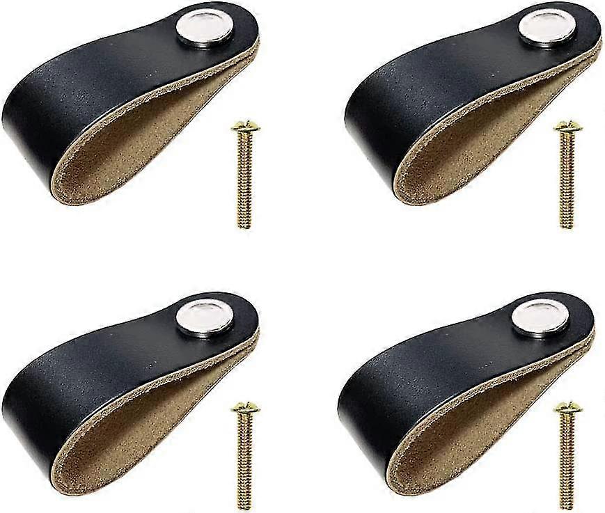 Set Of 4 Leather Door Handles With Single Hole 6.9 X 2 X 0.8 Cm (l X W X H) For Kitchen Cupboard, Drawer, Dresser With Screws Black Size M