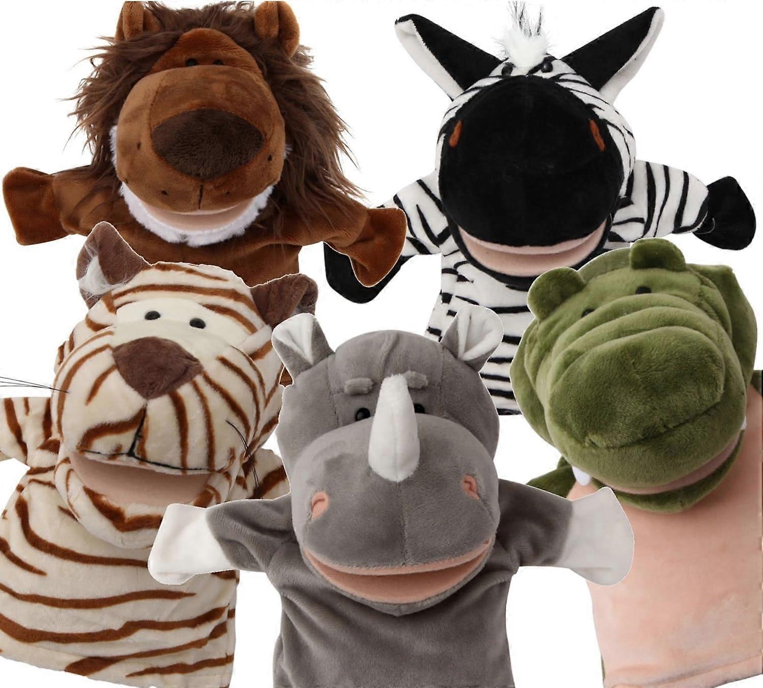 5-Piece Set Animal Hand Puppets with Open Movable Mouth/Zoo, Safari, Farm, Jungle/Tiger, Rhino, Lion, Crocodile and Zebra