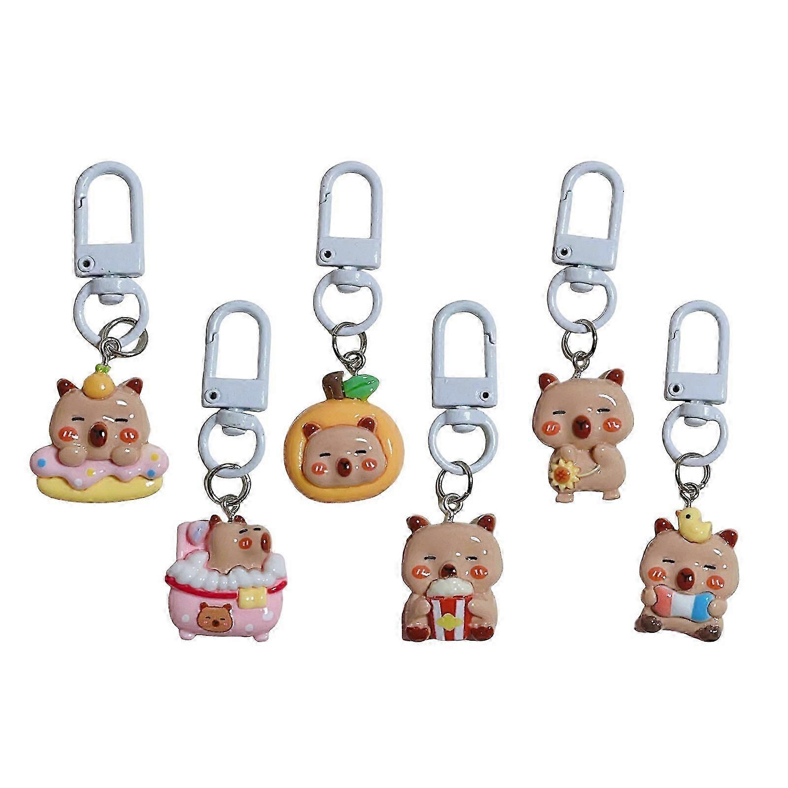 Set of 5/6 Capybara Key Holder Resin Bag Accessory Cartoon Capybara Keychain Keyring Pendant Fashionable Bag Decors