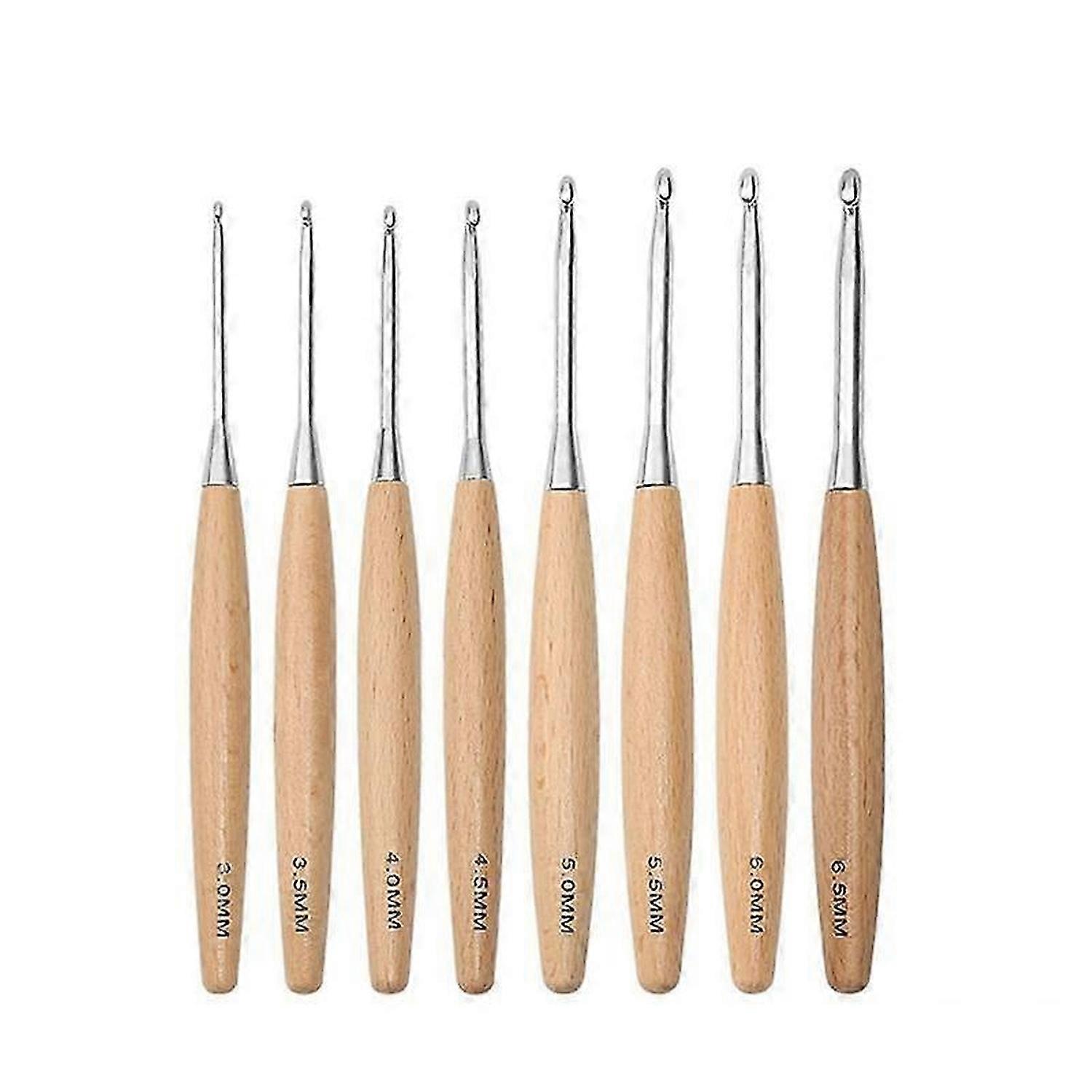 8Pcs Wood Crochet Hooks 3.0mm-6.5mm, Ergonomic Handle Crochet Hooks Set