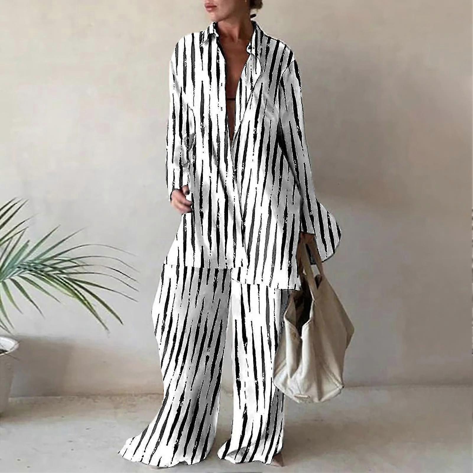 Stylish Women's Two-Piece Set: Long Sleeve Shirt & Wide-Leg Pants for Casual Work Daily Vacation Outfit