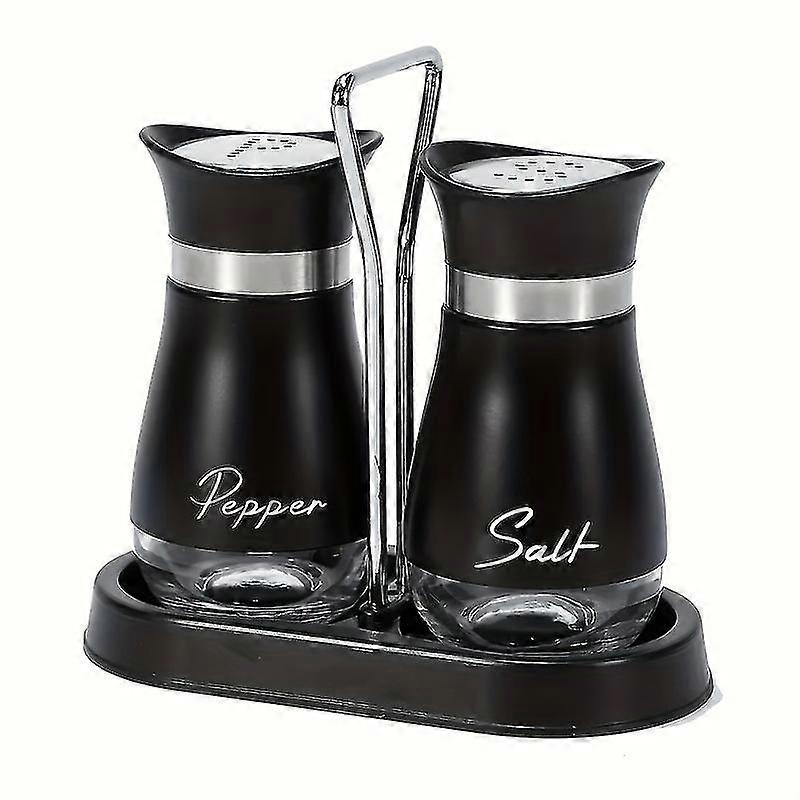 Elegant Glass Salt & Pepper Shakers Set with Holder - Sturdy Spice Bottles for Dining Table, RV Camping BBQ Travel - Kitchen Decor
