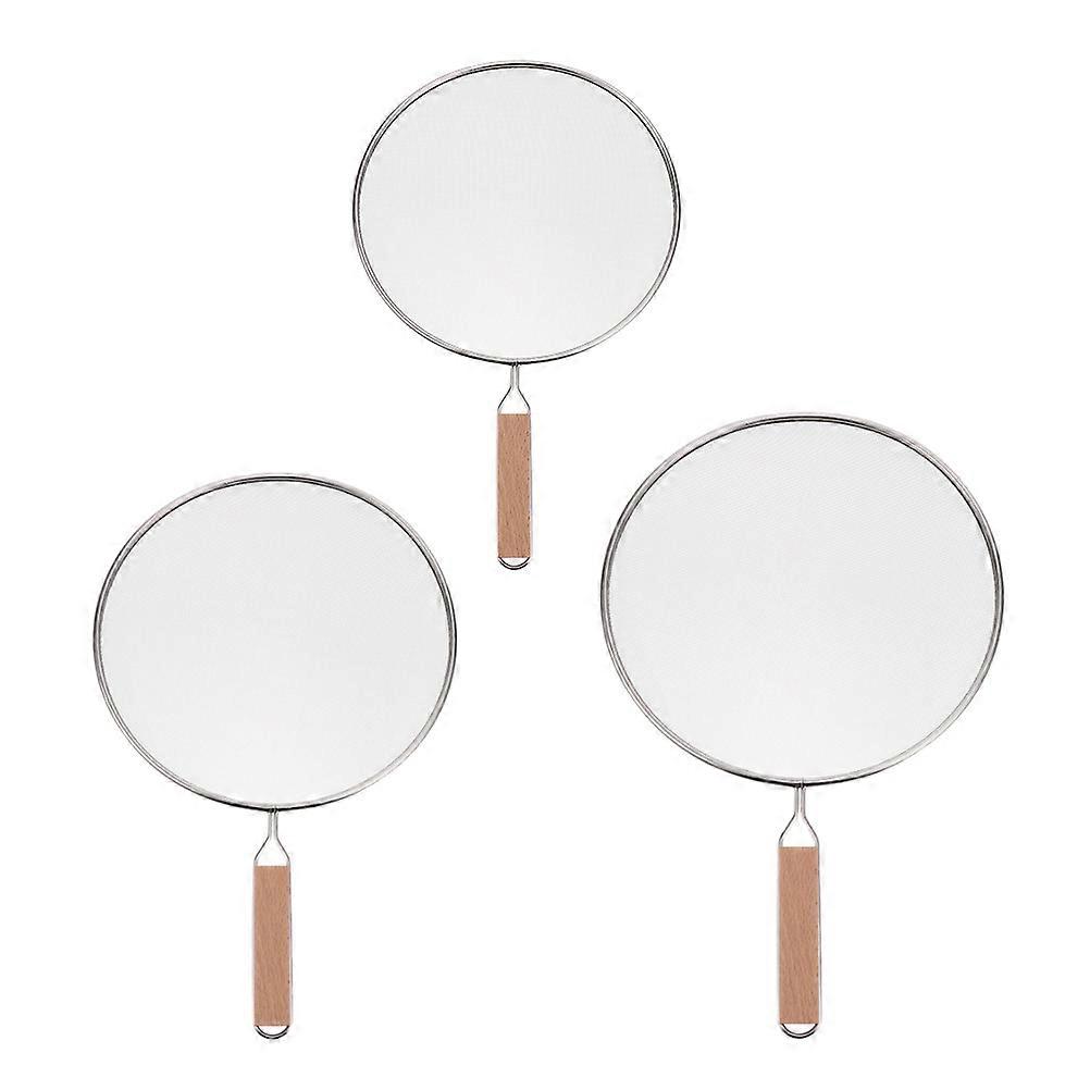 Stainless Steel Kitchen Splatter Guard Set of 3 Oil Cover Lid for Frying Pans with Easy Grip Handle for Grease Protection