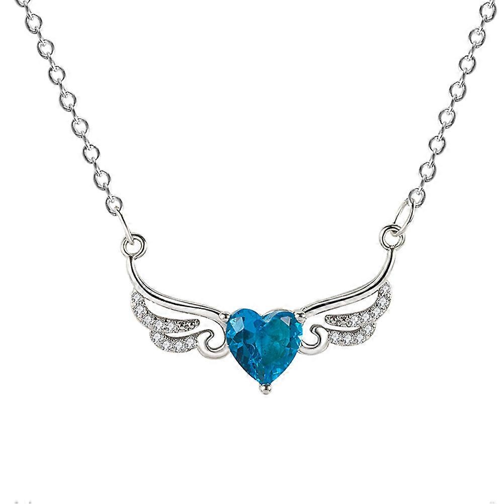 Neck Jewelry Blue Heart Pendant Necklace Wing Shape Birthday Party Elegant Design 1Pack