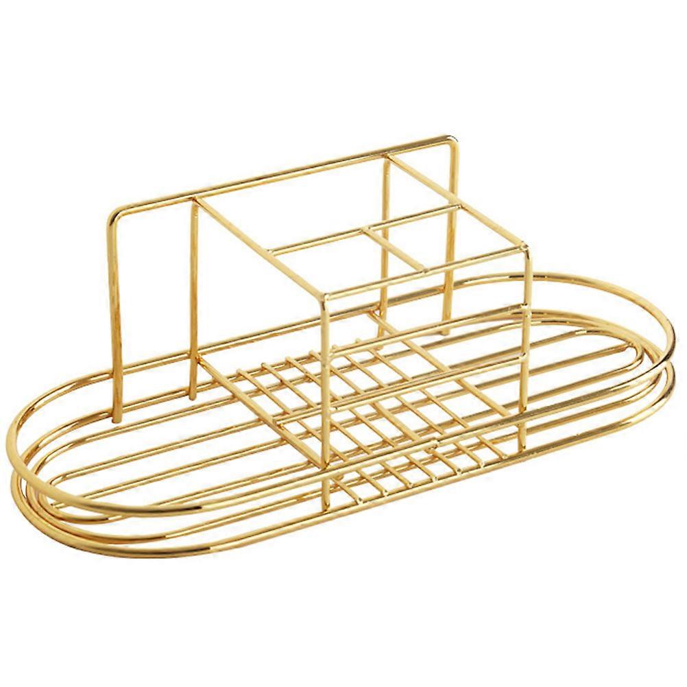 Toothbrush Station Golden Iron Storage Rack Home Furnishing Table Placement Rectangular 1Pcs