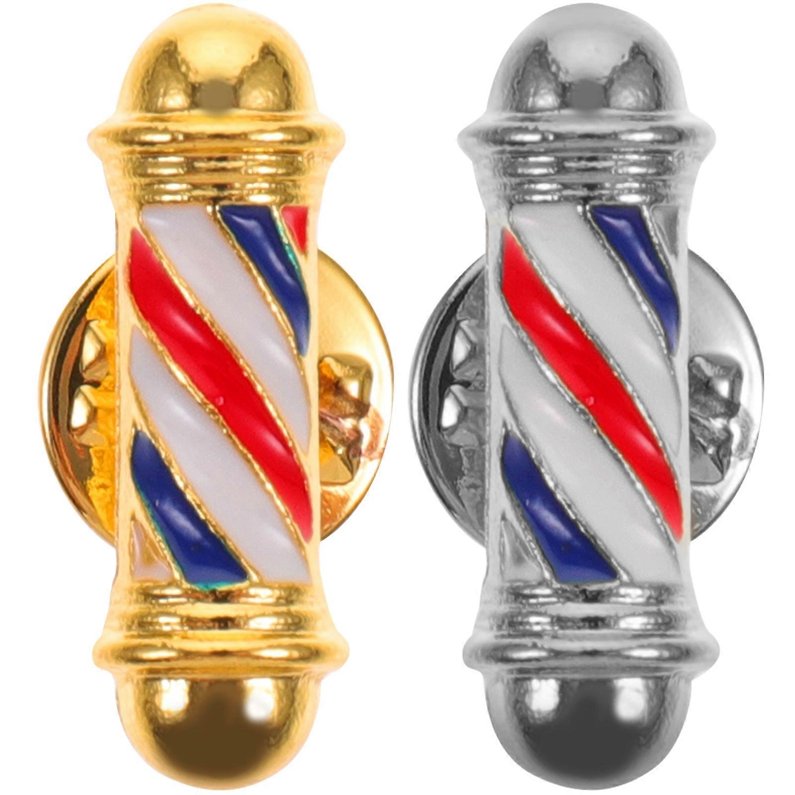 Barber Shop Pole Brooch Pins Stylish Hairdresser Lapel Pins for Clothing Decoration Unique Gold & Silver Design