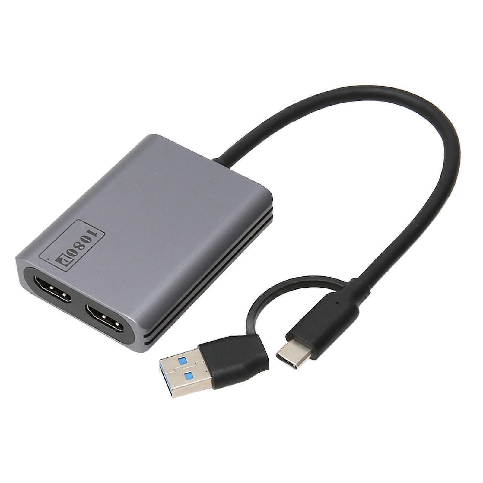 Type C to Dual HD Adapter 1080P Supported Plug and Play Aluminum Alloy USB to HD Adapter for Laptop Desktop PC