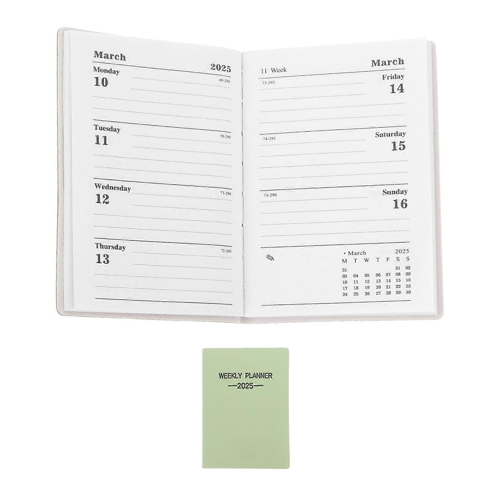 Small Planner Weekly Undated 10.60X7.70X0.80CM Ideal For Purse Office Home School Light Green Binding 1Pcs
