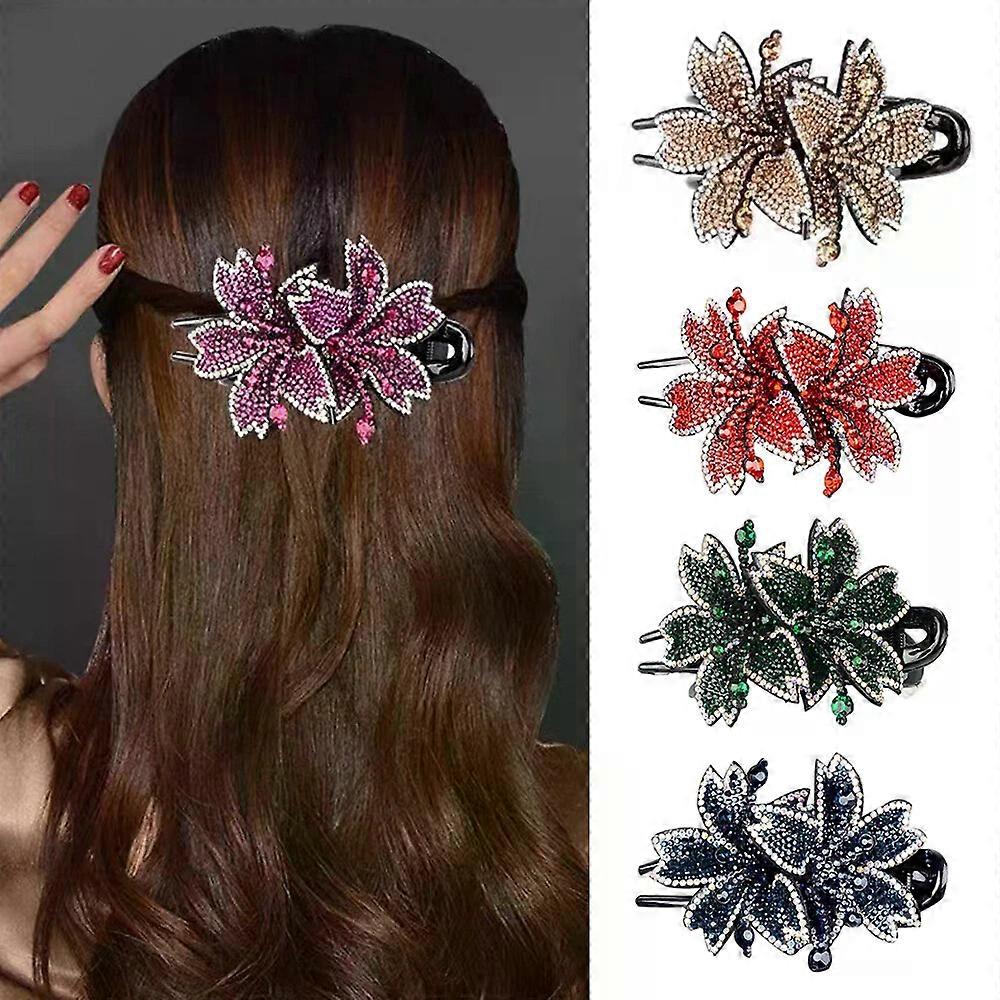 Function: Securely holds hair for ponytails/updos. Features: 5PCS, rhinestone flower, durable duckbill clip. Advantage: Strong grip, elegant, fits various hair. Scenarios: Daily, parties, dates, weddings & occasions.
