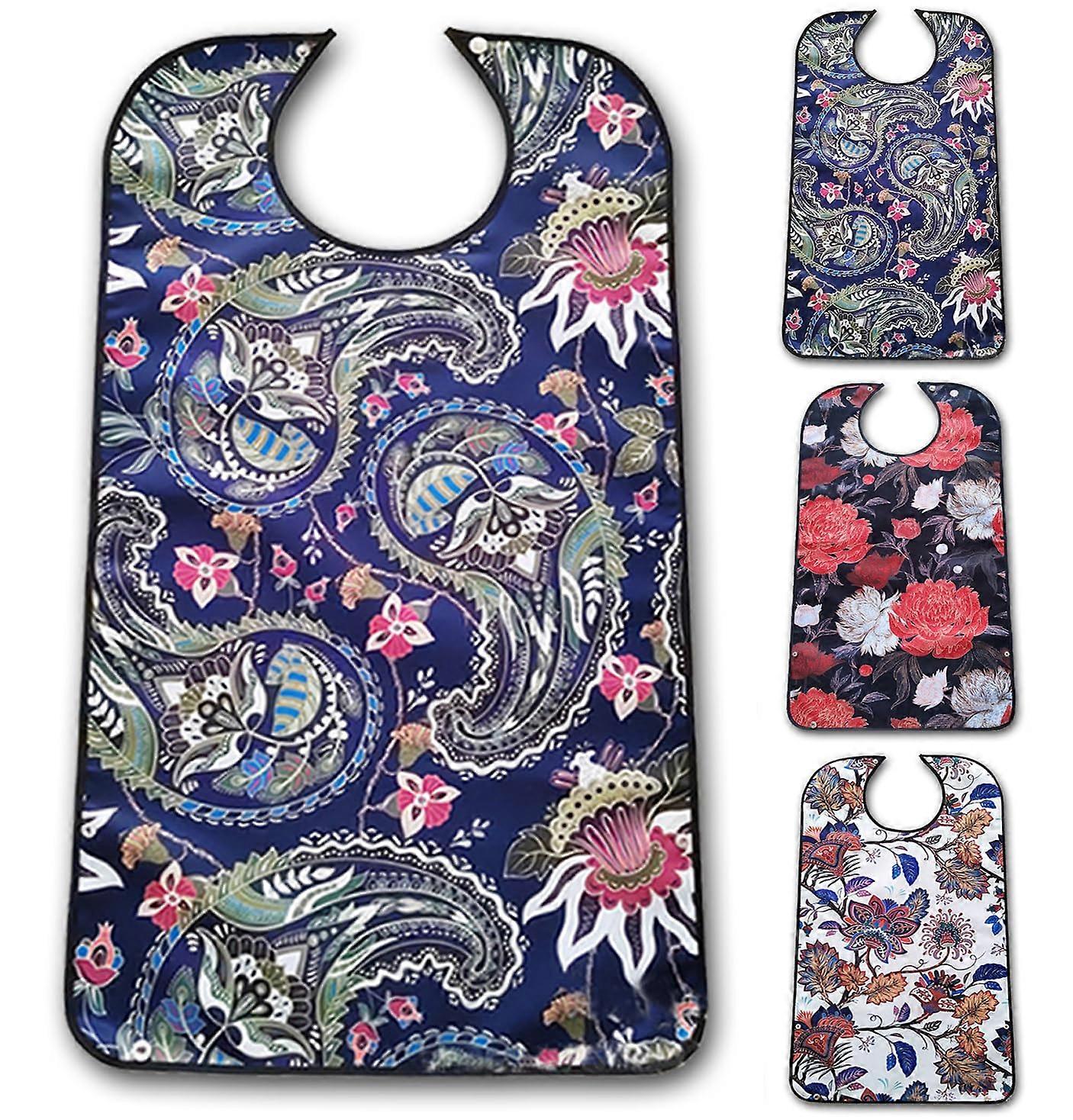 Adult bibs with catch pocket, waterproof, washable and adjustable, for adults, women, elderly, seniors, blue flower and boho style, 6 pieces.