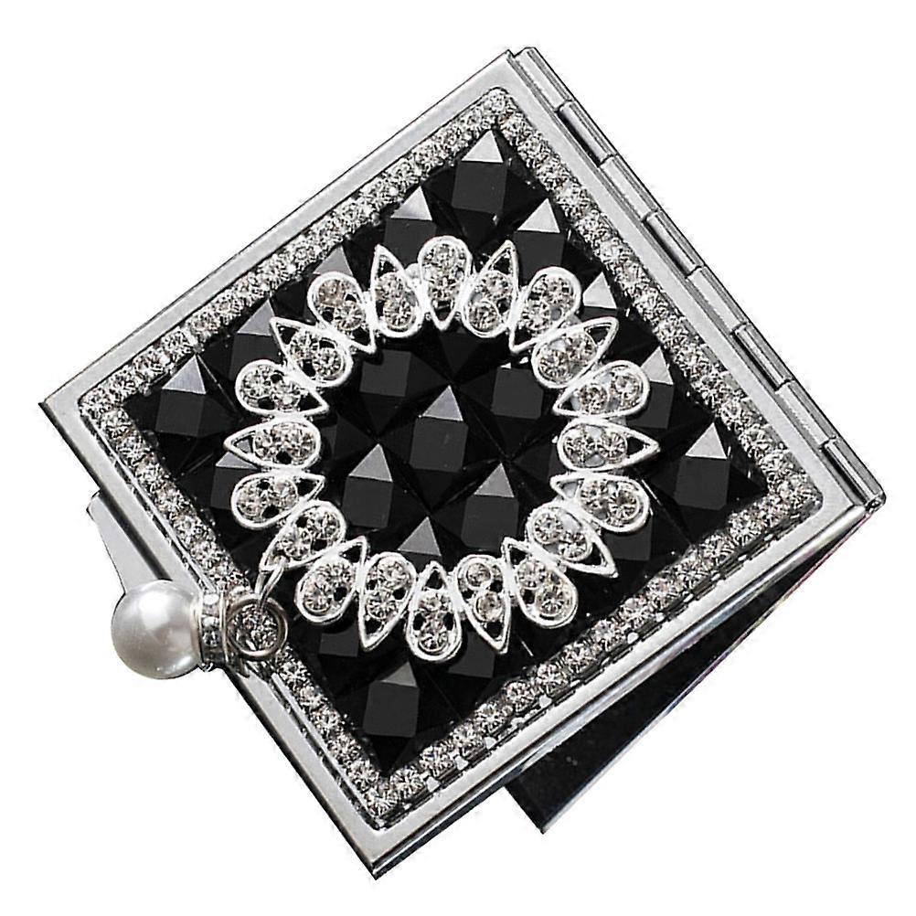 Chic Folding Makeup Mirror with Pearl Pendant Compact Durable Metal Mirror for Travel and Everyday Use, Multi Angle Design for Handbag