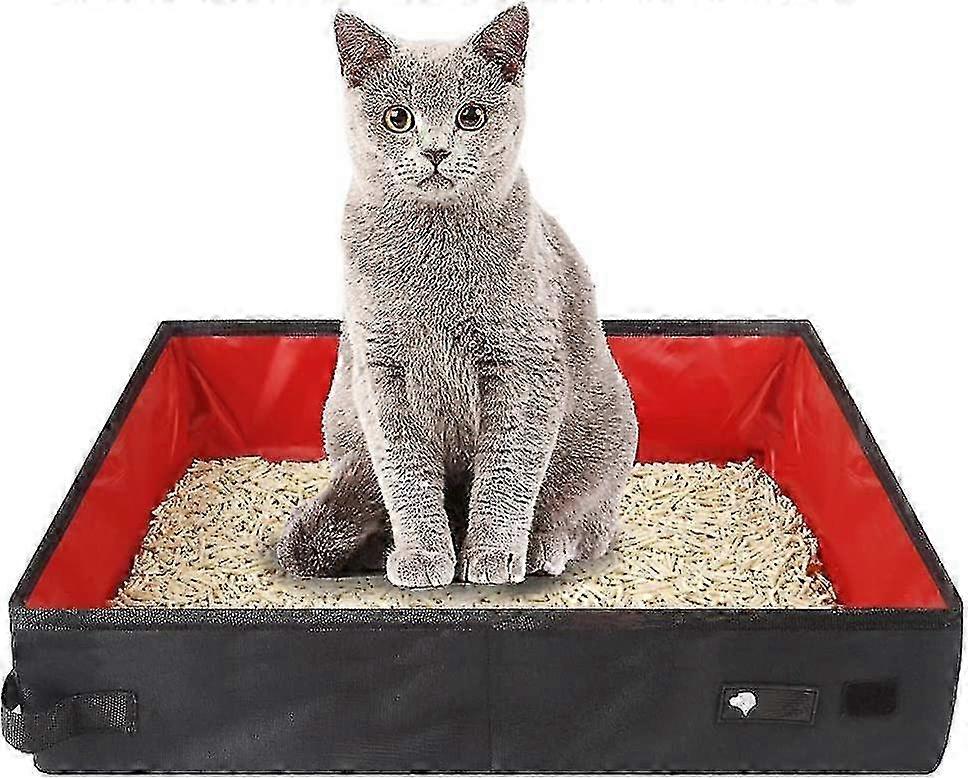 Portable Cat Toilet, Foldable Litter Box, Travel Cat Litter, Waterproof, Oxford Cloth (Red)