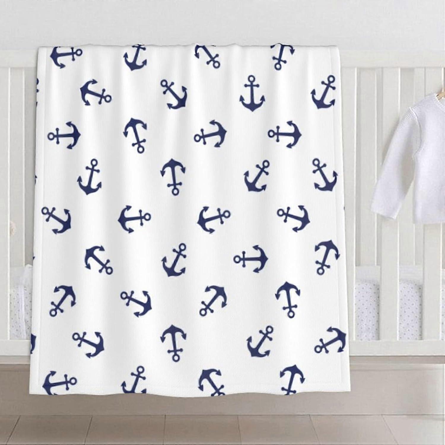 Baby Blanket Anchor for Boy Girl White Navy Marine Newborn 30x40 Inch Toddler Infant Nursery Throw Blankets Double Layer Comfy Soft Plush Stroller Cri