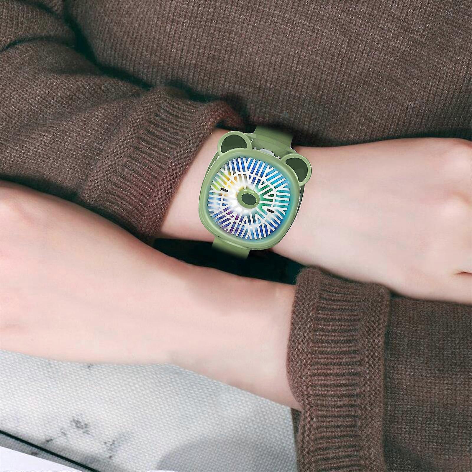 Mini Watch Fan, Ultra Quiet Three Speed Portable Handheld Fan, Usb Stroller Fan, Color Led Lights For Kids, Students, Adults Outdoor Travel Camping