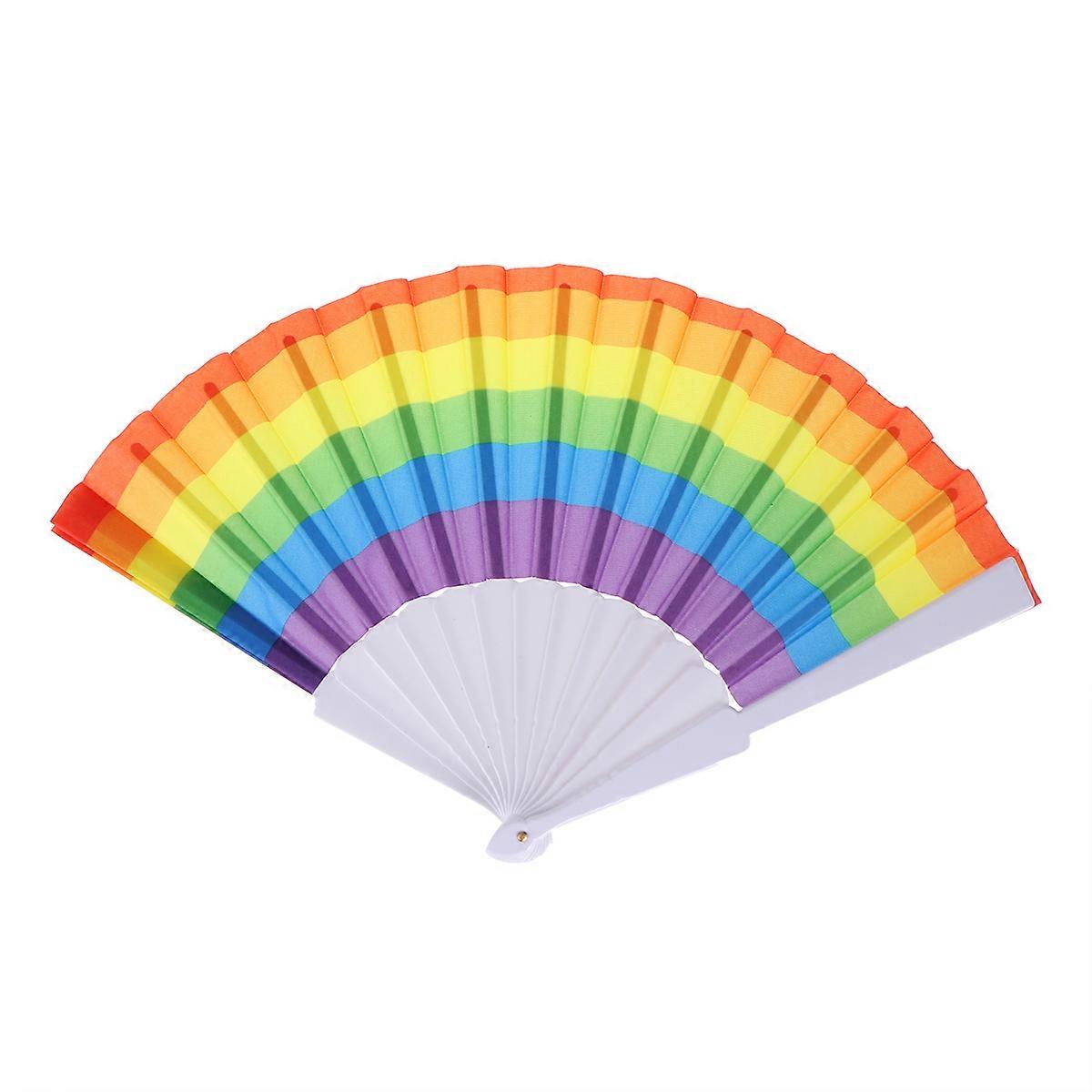 Handheld Fan Foldable Cooling Portable Collapsible For Home Use 23cm Plastic Strands Rainbow Arc 3Pcs