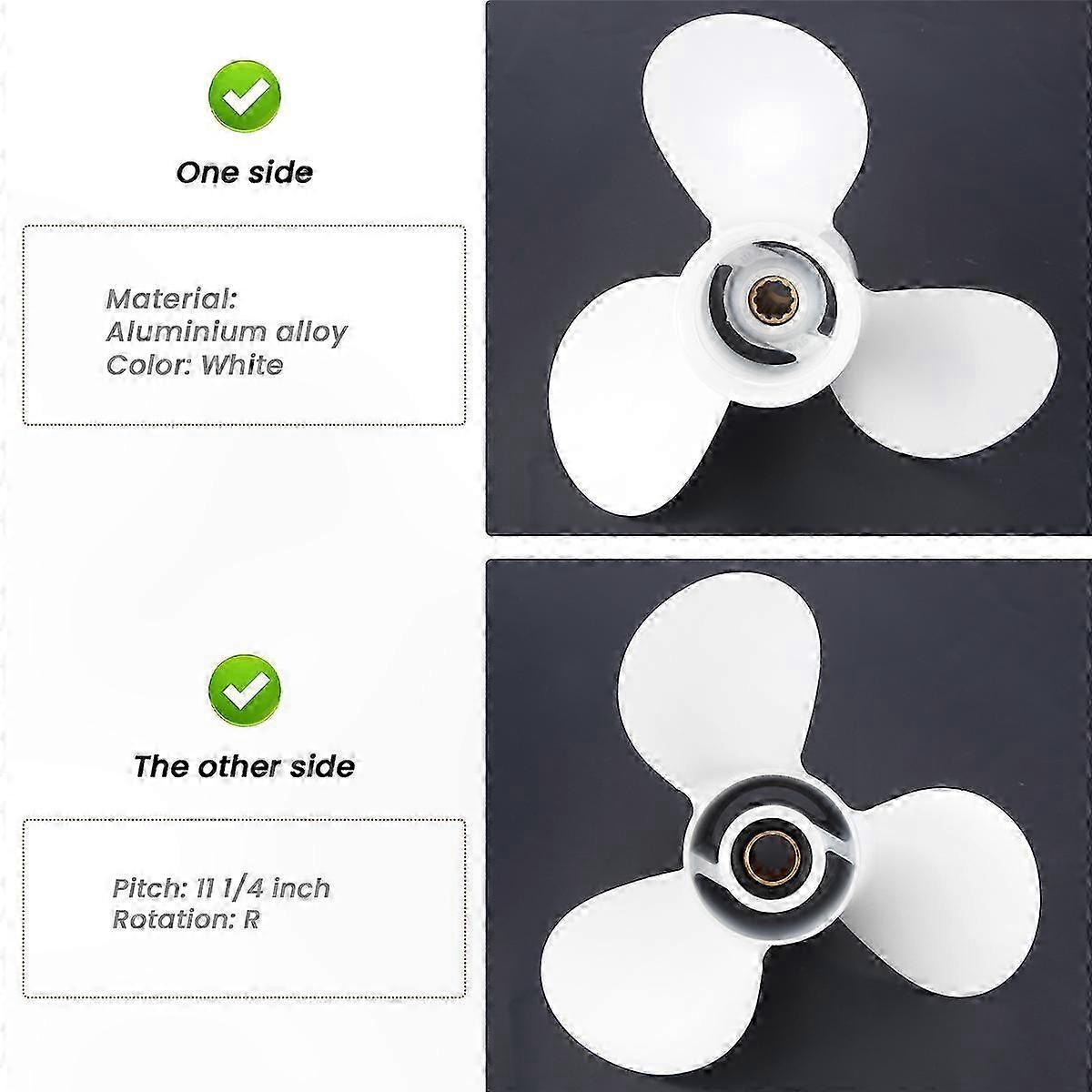 Aluminum Alloy 3-Blade Propeller for 20-30HP Outboard Motors, 10 Spline, Black