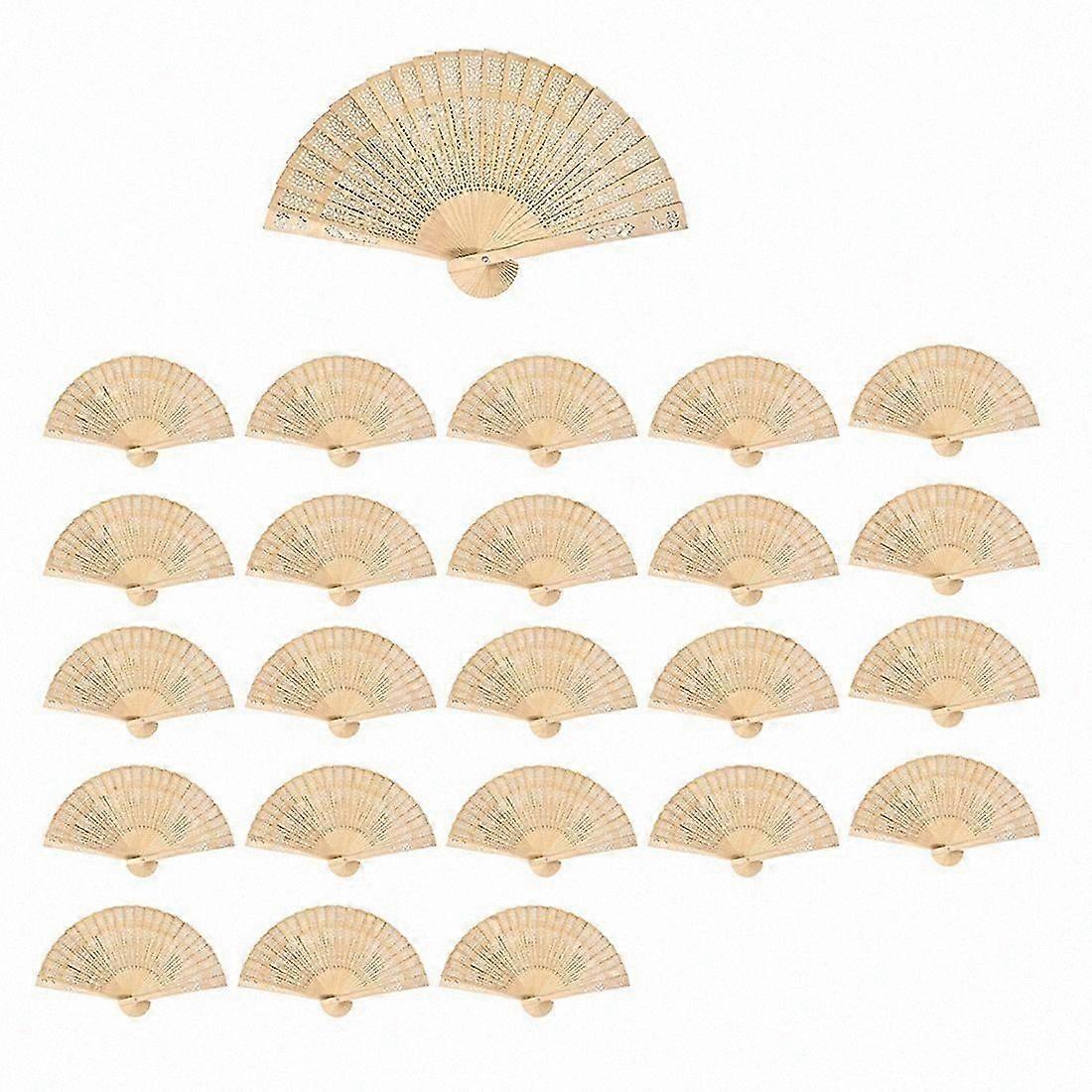 Wooden Hand Fan Hand Held Folding Fan with Gift Bags Wedding Favors (Pack of 24)