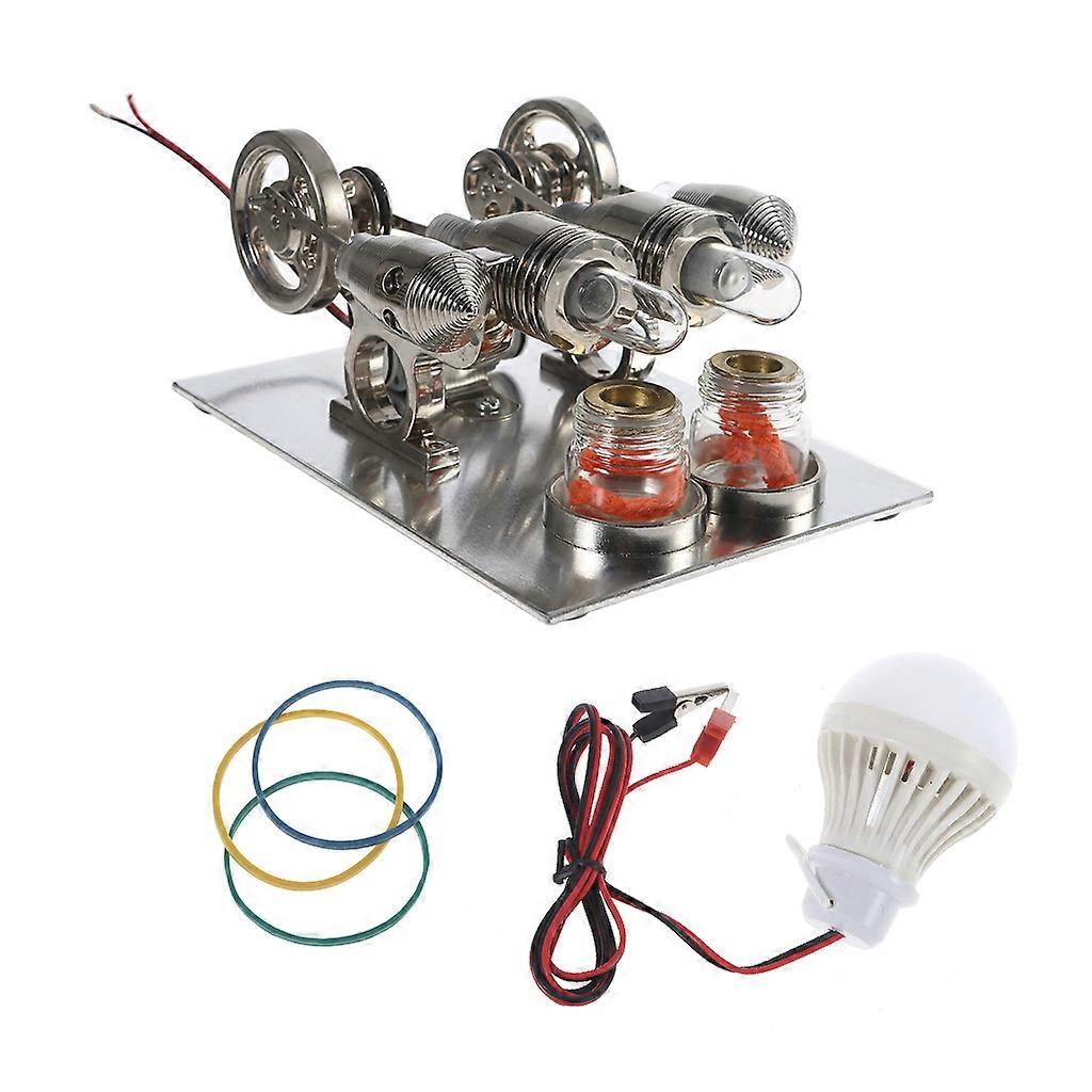 Double Cylinder Stirling Engine Motor Model Scientific Demo Easy Operation