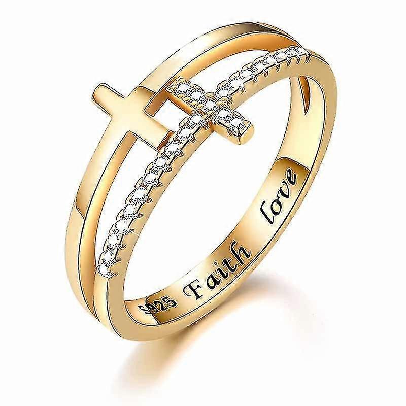 Double Cross Diamond Lettering Silver Ring For Women Lady Jewelry Gift For Girlfriend Wife