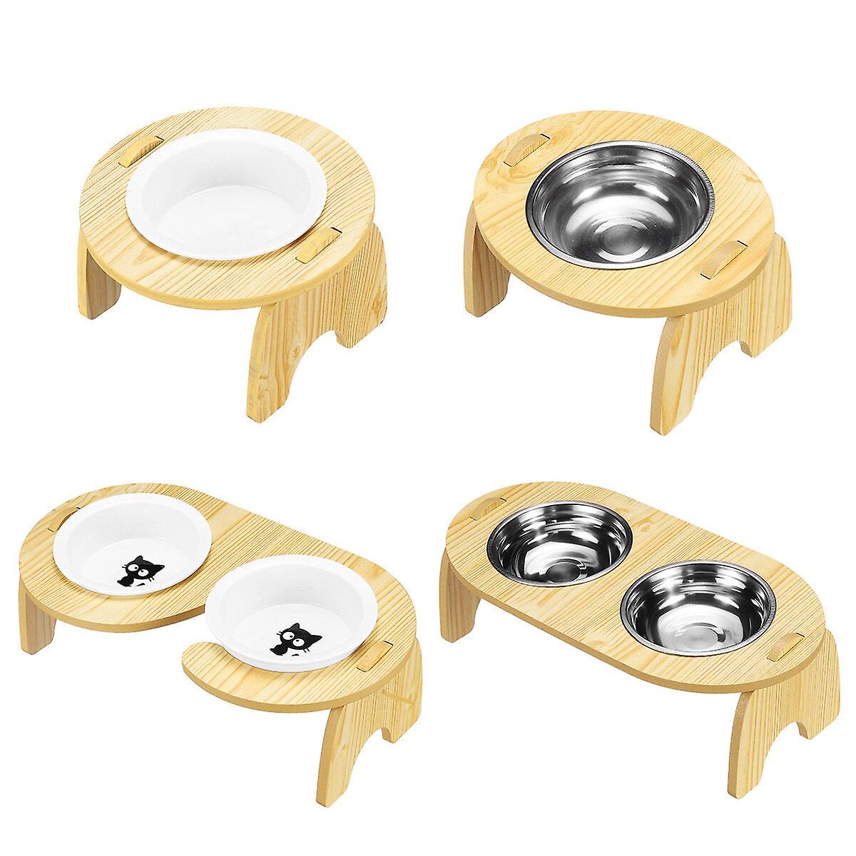 Double Elevated Pet Bowl Dog Cat Feeder Food 2 Kind Of Materials Anti Slip Design Easy To Clean And Install