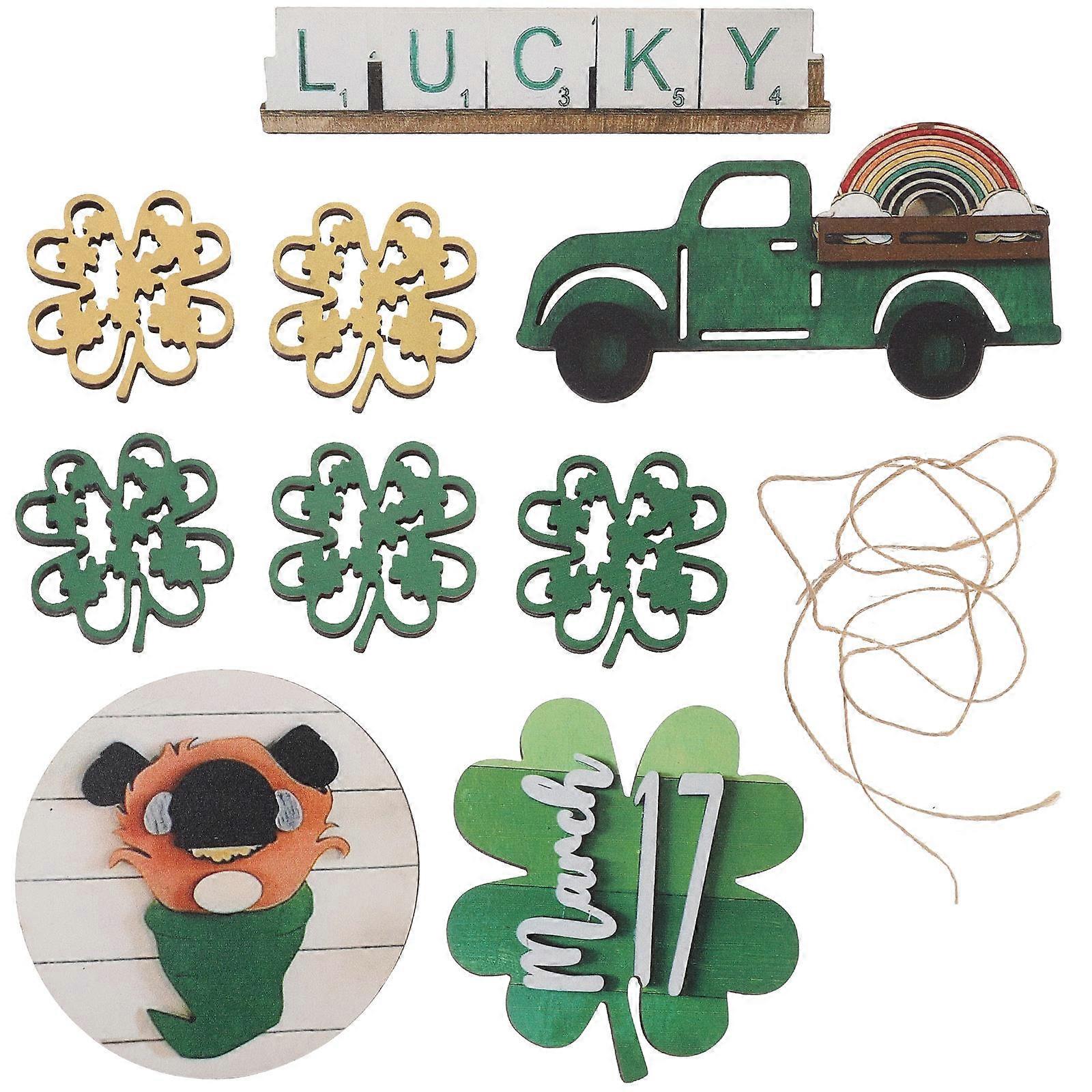 Farmhouse Style Wooden Sign Tiered Tray Decor Patricks Day Holiday Decoration 5Pcs
