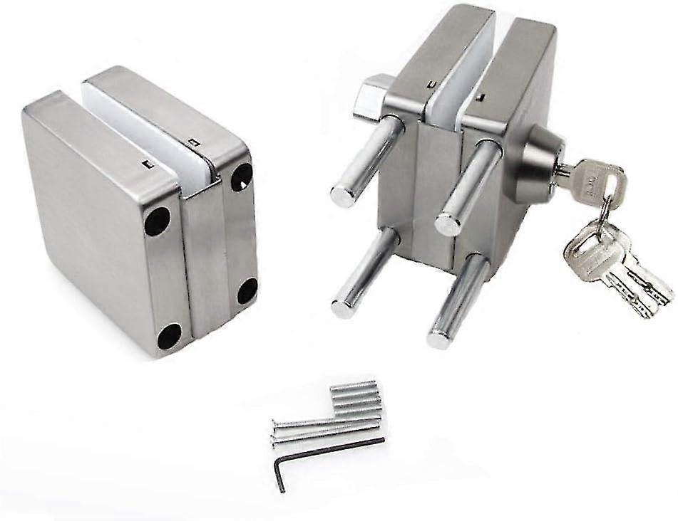 Stainless steel double glass door latch with brushed square finish, both sides open frameless for 10-12mm thick glass.