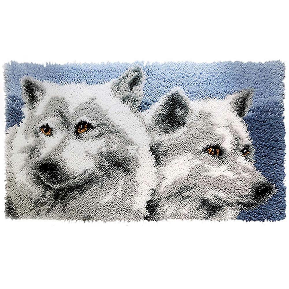 Latch Hook Kits Rug Carpet Making Cushion Crochet Kits for Home Decor, Two Wolf