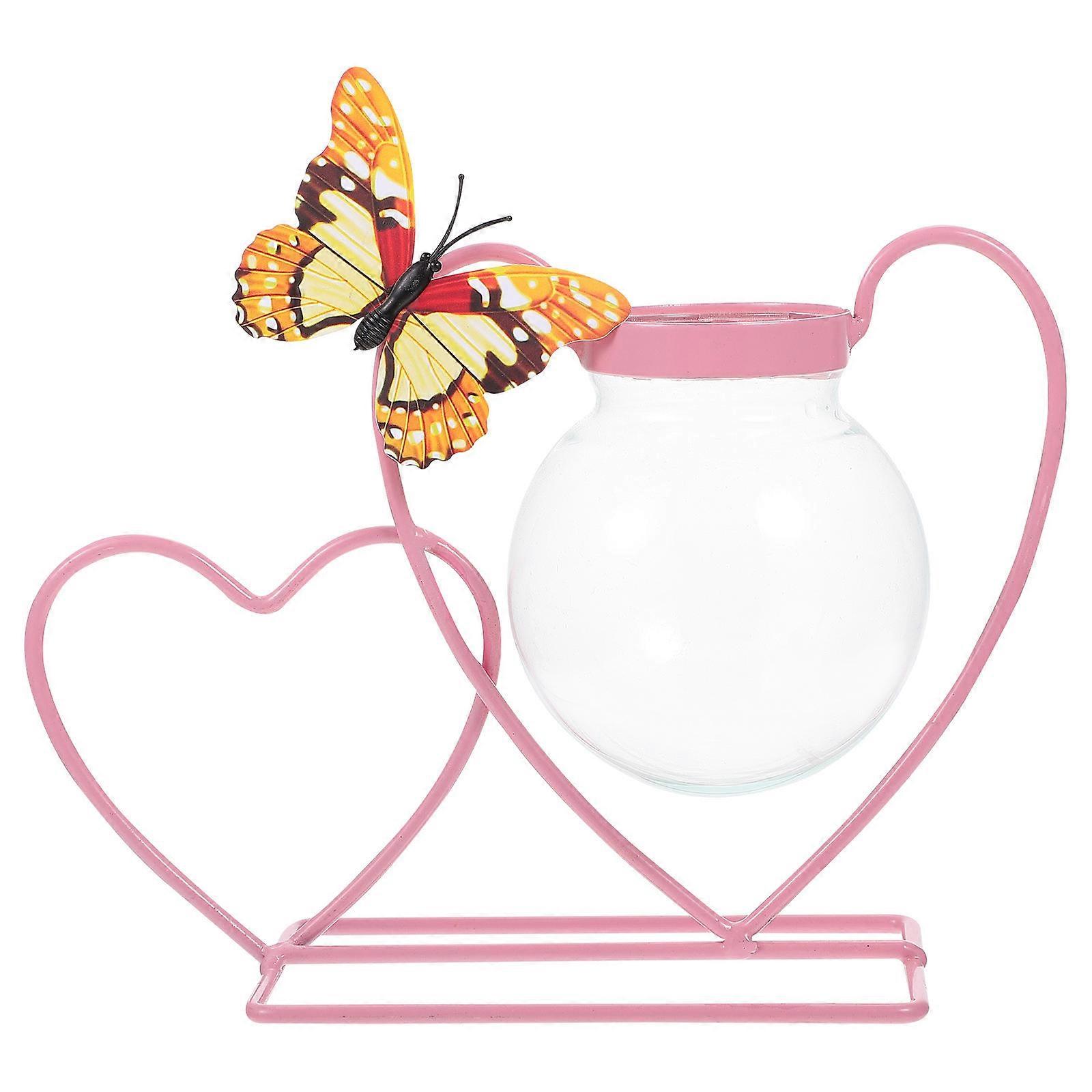 Glass Vase Hydroponic Container Glass Plant Tube with Heart Shape Iron Rack