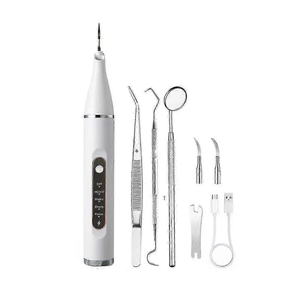 Dog Plaque And Tartar Remover, Ultrasonic Teeth Cleaner For And Cats, Ultrasonic Dental Kit, Dental ULTRASONIC PLAQUE AND TARTAR REMOVER FOR PETS - This product uses ultrasonic technology, not a motor, to safely remove plaque, tartar and stains from your pet's teeth. It utilizes high-frequency vibrations (up to 40,000 Hz) to efficiently clean the teeth, ensuring a cleaner, healthier dental condition for your pets.SAFE FOR GUMS, PAIN FREE AND EASY TO USE - The cleaner comes with a specially designed tip and latest ultrasonic technology that only activates when touching teeth or other hard surfaces to protect your pet's , making it a pain-free alternative to traditional dental cleanings. sign allows for effortless maneuvering, even in hard-to-reach areas.SAVES TIME AND MONEY - Use pet dental cleaner once every 3 to 4 months or as often as needed can your pet's dental health just brushing their teeth or feeding your pets dental chews. This cleaner can the trips to the vet and hundreds of a year by helping your pet keeping a healthy dental condition and preventing periodontal disease with the least effort.5 CLEANING MODES & LED LIGHT & 4-PIECE PROFESSIONAL DENTAL CLEANING KIT - The device works on 5 different modes. You can adjust the mode with one push on the button according to the hardness of your pet's plaque and tartar. Built-in LED light at the top of the device provides better visibility in your pet's mouth, making it easier to target areas with tartar buildup.NO MORE STINKY BREATH - With the use of this product, you can reduce your pet's in-mouth bacterial buildup by removing plaque and hardened tartar. This improves your pet's breath and overall dental health. As a device designed to be used Colour:WhiteMaterial:PlasticSize:18cmPackage Contents:1 set * Dog Plaque and Tartar RemoverOnly the above package content, other products are not included.Note: Light reflection and different displays may cause the color of the item in the picture a little different from the real thing. The measurement allowed error is +/- 1-3cm.