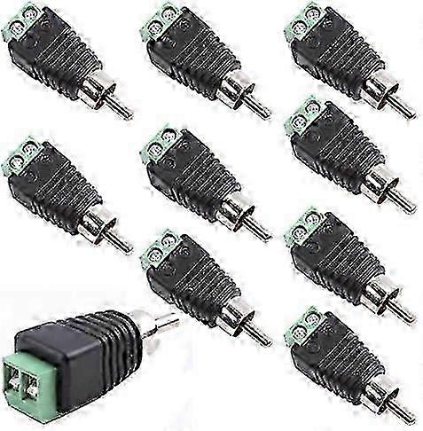 Professional for CCTV installers and excellent for all DC cameras Part No electrical tap, no splicing, no crimping, but only a small screw driver Easier for CCTV microphone or camera installation, save time and more securer Phono RCA Plug TO AV Screw Terminal Plug Connector CCTV Video AV Balun Package Contents: 10Pcs Male RCA Plug to AV Screw Terminal.