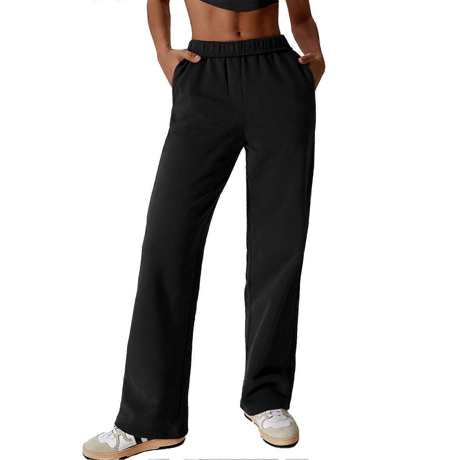 Straight Wide Leg Pants Plush Warm Big Pocket Elastic Waist Wide Leg Sports Trousers for Women