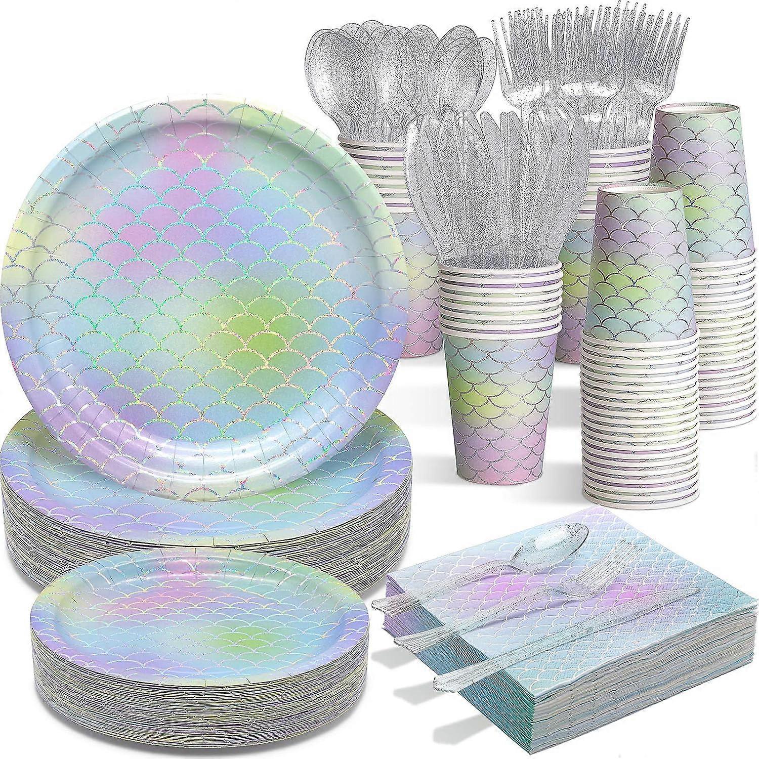 Mermaid Party Supplies - 336 PCS Disposable Dinnerware Set