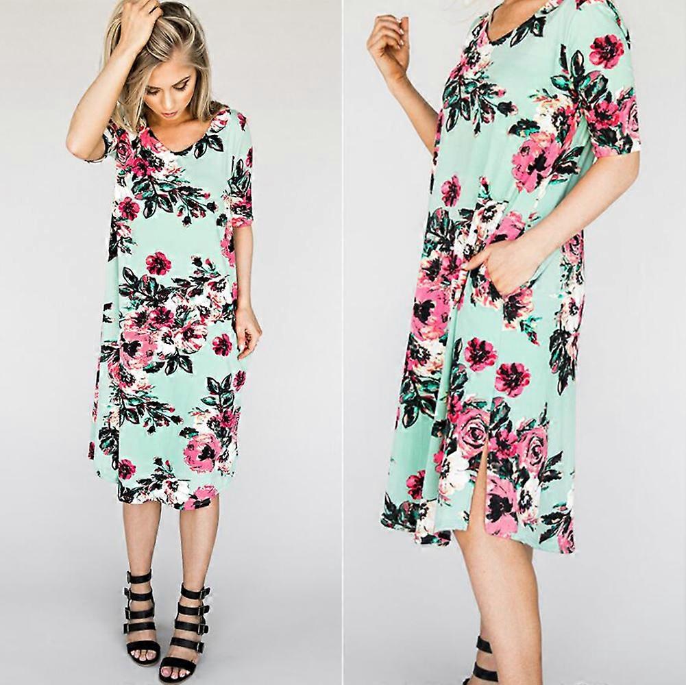 Overseas warehouse European station 2019 summer new plus size women's European and American printed dress ladies beach long skirt