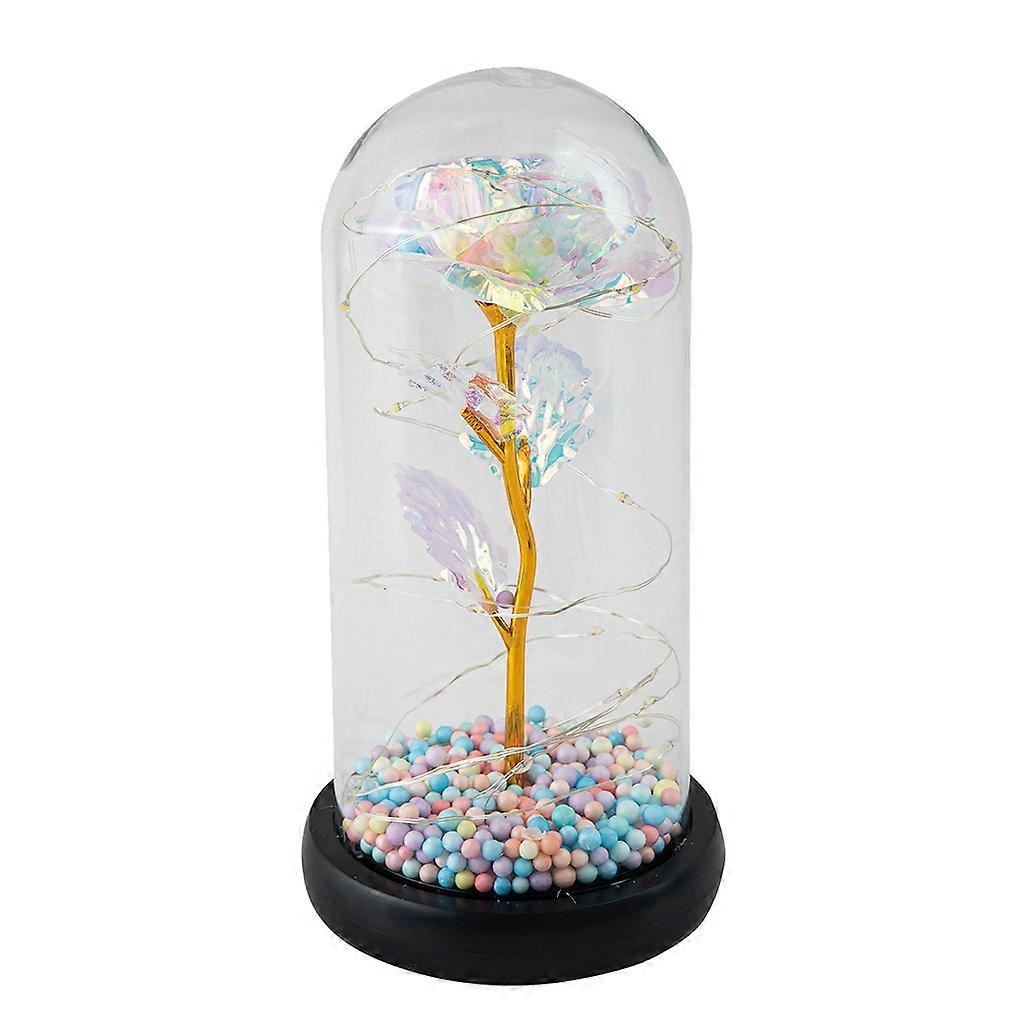 Enchanted Eternal Rose Flower Dome Glass LED Night Light Valentine's Day Gifts color white