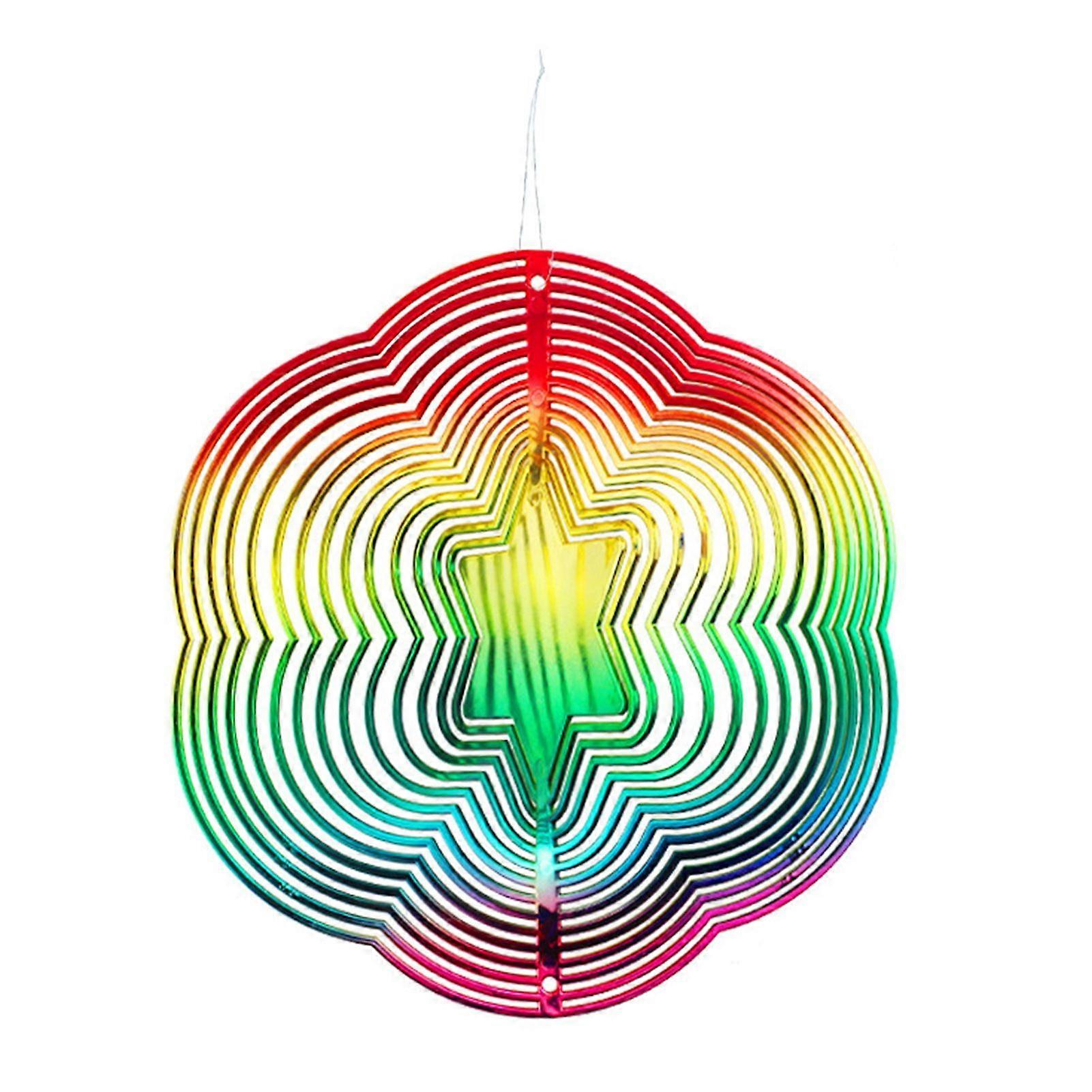 Hexagon 3D Colorful Wind Spinner Bird Reflector Highly Reflective Indoor Outdoor Garden Yard Farm Hanging Chime Bird Deterrent Ornament Pendant