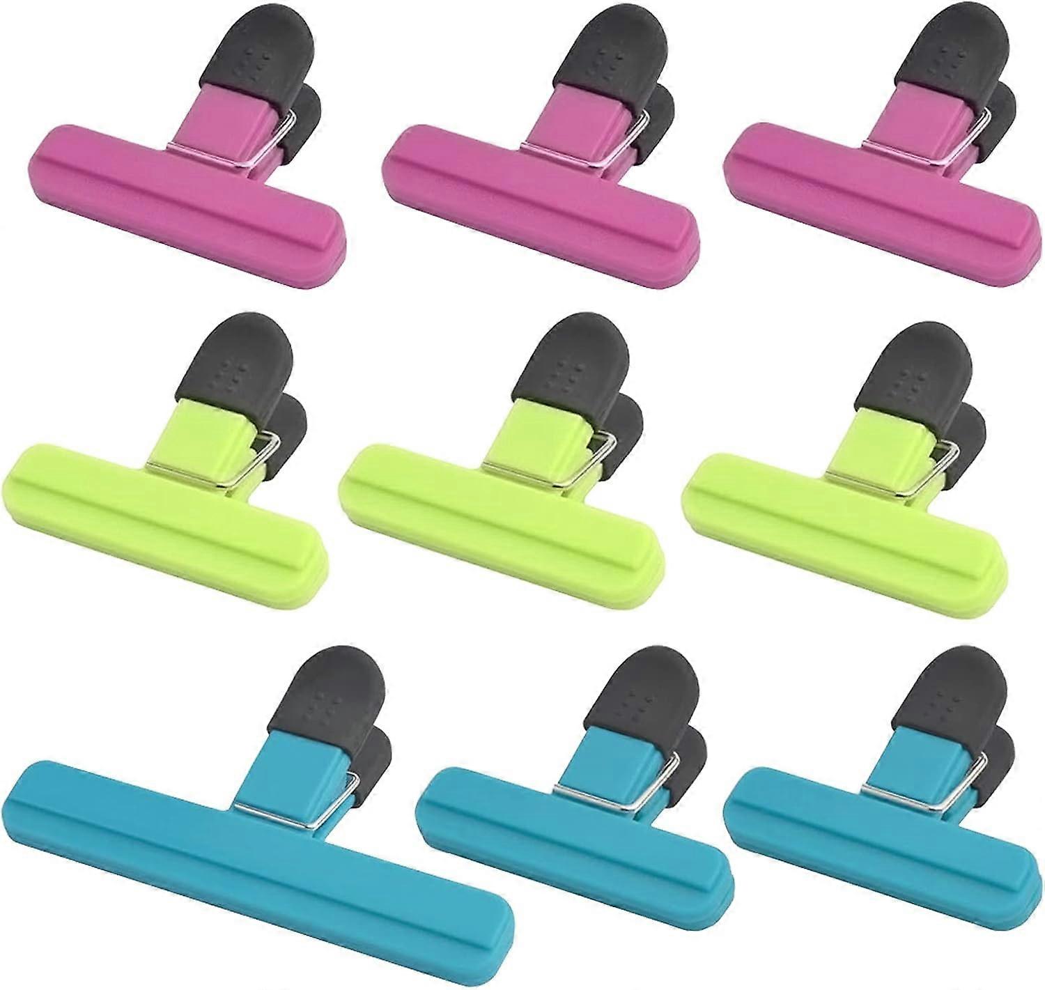 Bag Clips, 9 Food Bag Clips, 3 Colours Sturdy Food Clips, Reusable Plastic Clips for Home, Kitchen and Office, for Sealed Snacks, Flour, Fresh Food