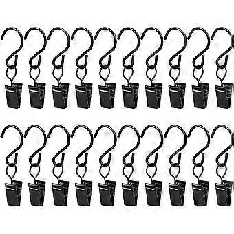 20 Piece Metal Curtain Clips, Small Curtain Clip Hook, Shower Curtain Clip Hook, Black 0.7 x 0.35" (Black)