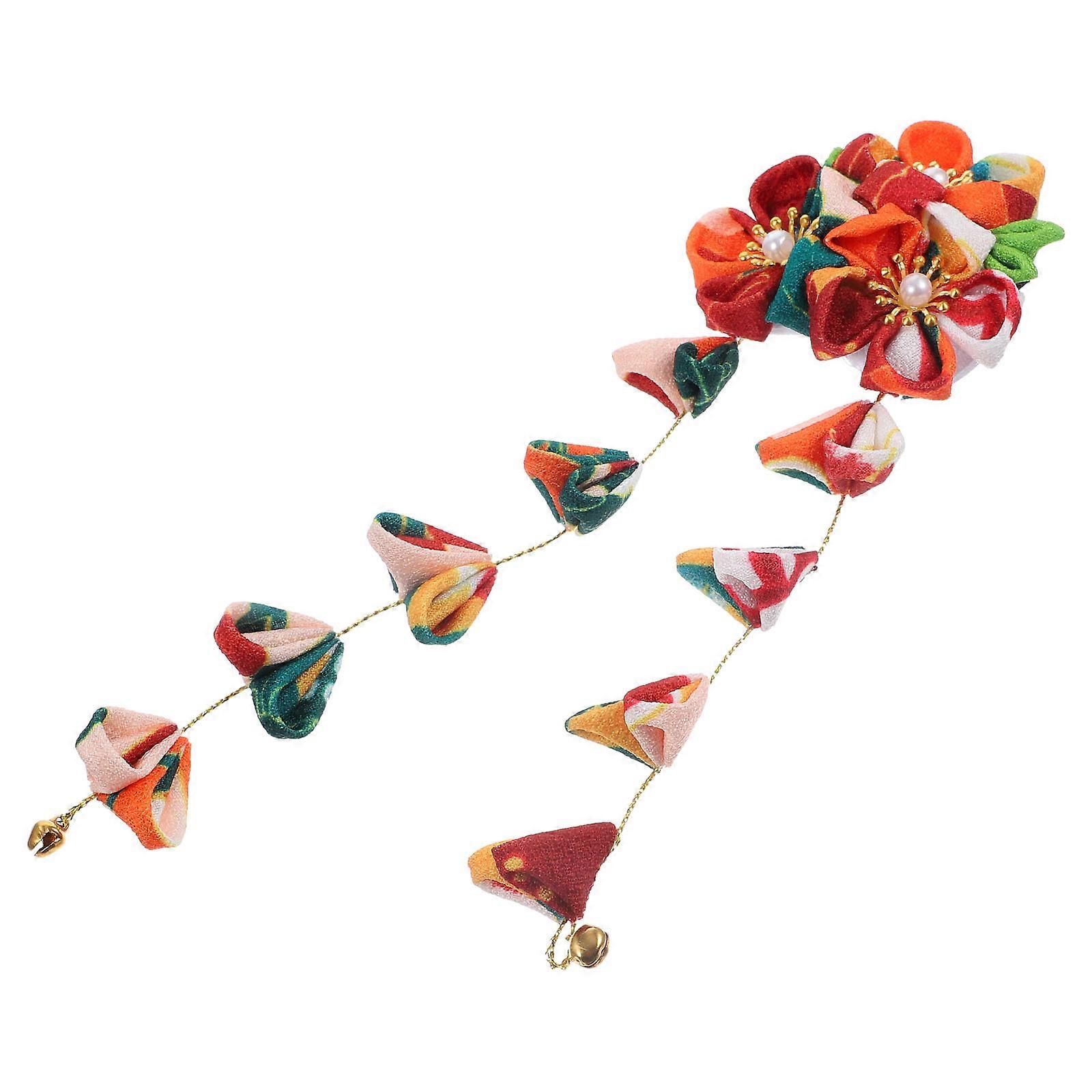 Flower Hair Clips with Tassels Japanese Style Hair Clip Daily Dress Up Performance Multi Fabric Hair Decoration 1Set