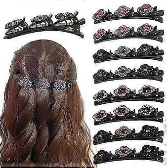 Sparkling Crystal Stone Braided Hair Clips For Women, Braided Hair Clip With 3 Small Clips, Braided Hair Clips For Girls, Multi Clip Hair Barrette Wit