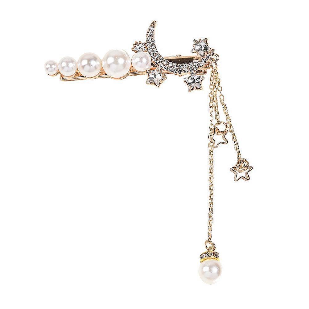 Elegant Pearl Inlaid Hair Clip with Moon and Star Tassel Design for Women's Parties and Weddings