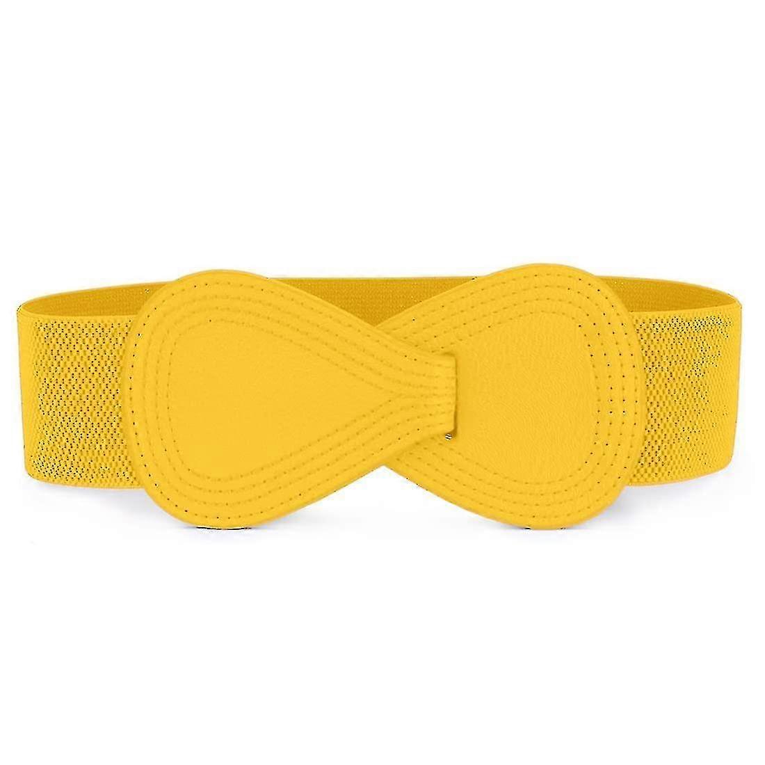 Interlock Buckle 8-shaped Faux Leather Elastic Belt Cinch Waistband For Lady-yellow