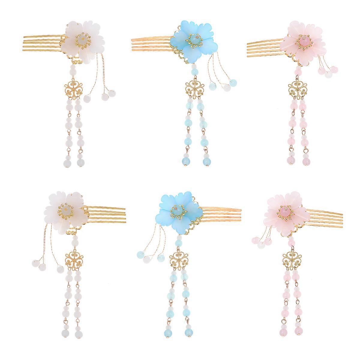 Handmade Tassel Hair Comb for Women with Crystal and Glass Pink Charming Hanfu Hairpins 2 Pcs