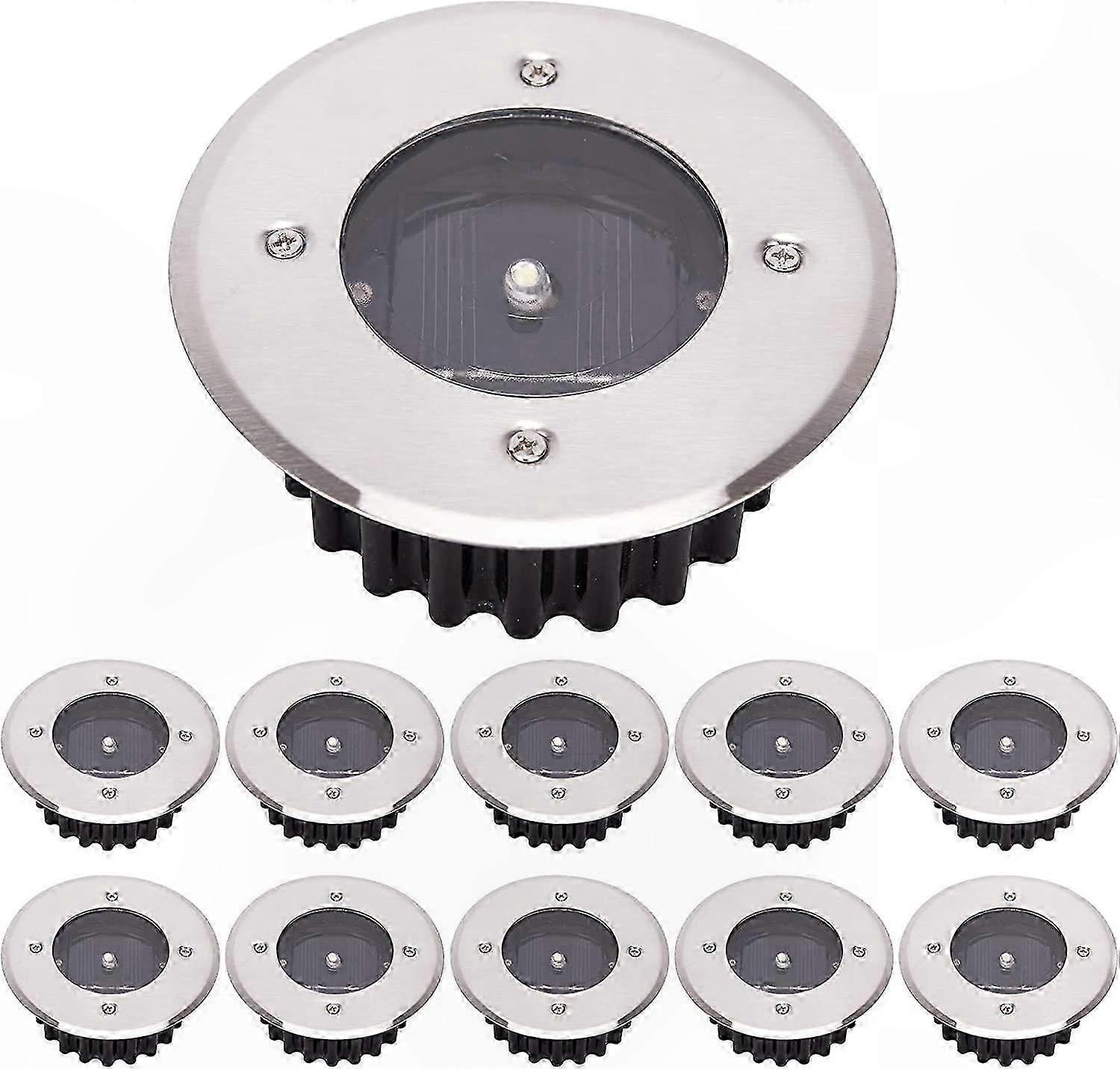 Solar-Powered LED Ground Lights, 10-Pack, Cool White, Round, IP65 Waterproof, Energy Efficient Class A+