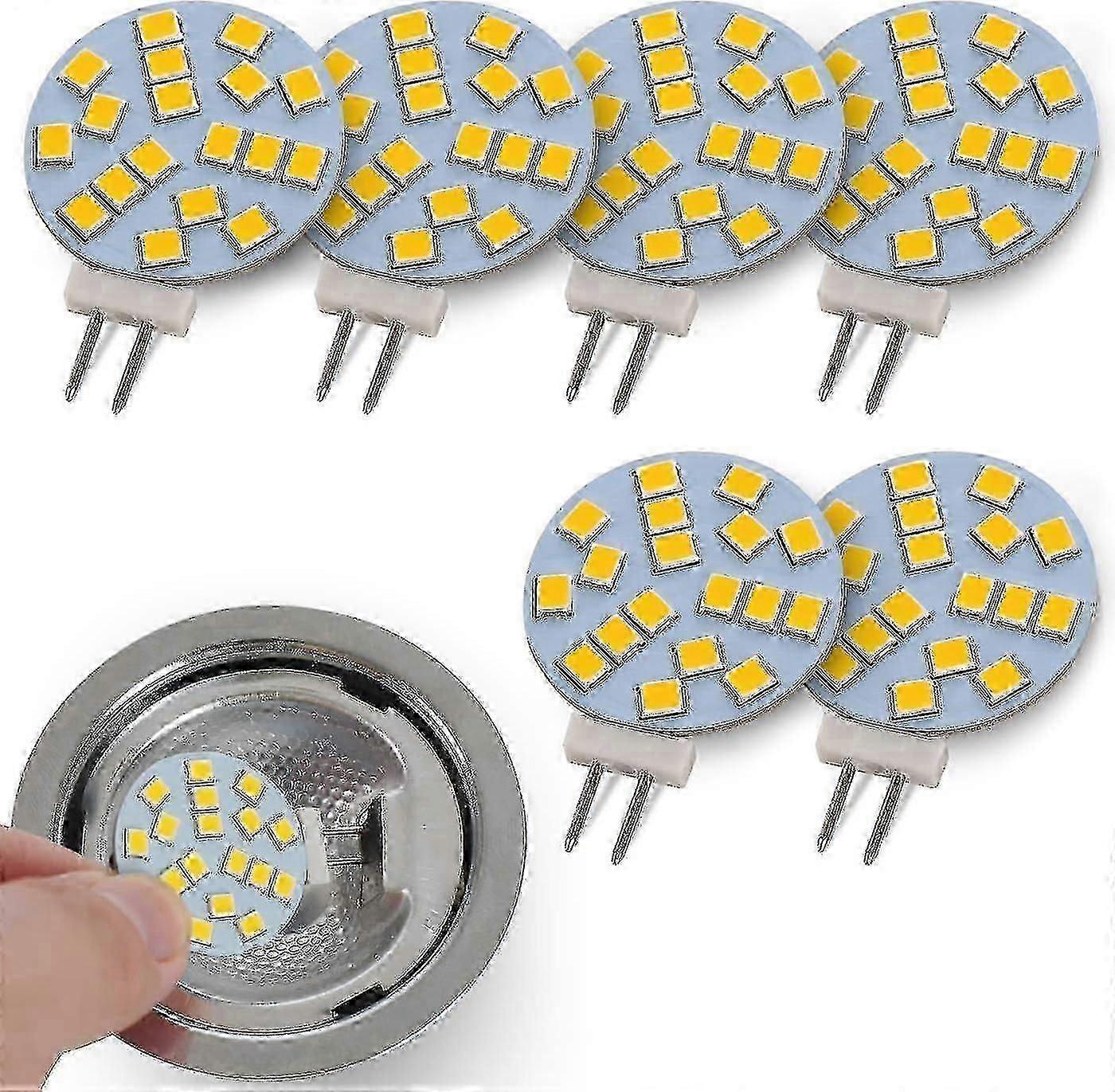 Warm White G4 Round LED Lamps, 2W Replaces 20W Base Halogen Bulb, 12V AC/10-30V DC, G4 Illuminant for Recessed Under Cabinet Lighting, 6pcs